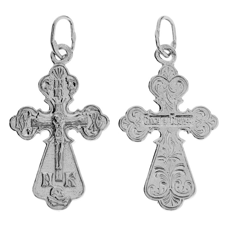 Это Освященное Православное изделие - Крест, из Серебро Ag 925. Изделие входит в коллекцию: 'Эпифания'. Произведено по типу: 'Штамп'. Украшена ювелирными камнями. Данные по их ассортименту можно уточнить у менеджера. Изделие имеет высоту 3 см. Изделие имеет ширину 1,5 см. Весит, от 2.17 гр.