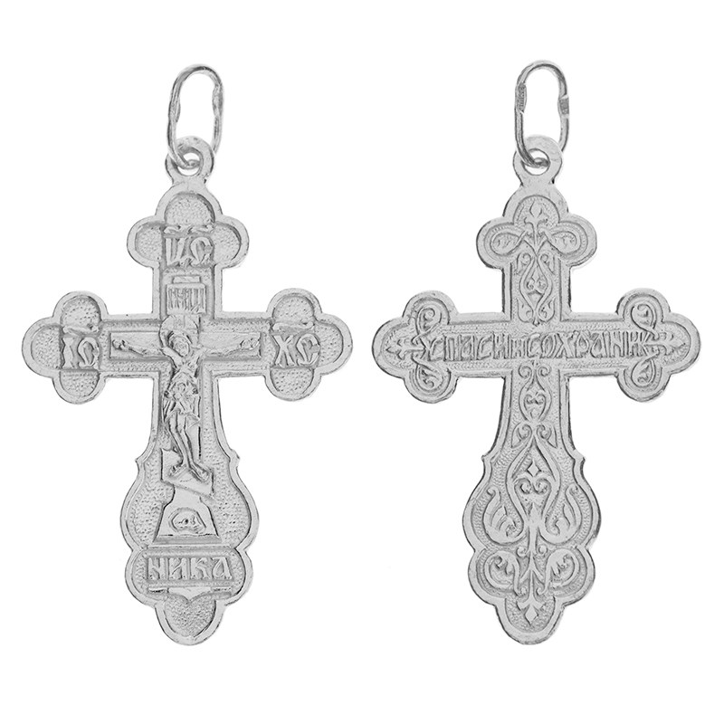 Это Освященное Православное изделие - Крест, из Серебро Ag 925. Изделие входит в коллекцию: 'Эпифания'. Произведено по типу: 'Штамп'. Украшена ювелирными камнями. Данные по их ассортименту можно уточнить у менеджера. Изделие имеет высоту 3,8 см. Изделие имеет ширину 2,1 см. Весит, от 2.45 гр.