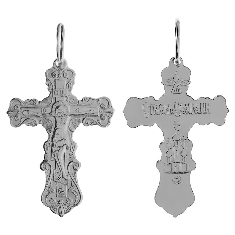 Крест серебряный Ag 925, коллекция Иваново, с молитвой Спаси и сохрани, Платина, 1,9 гр., арт. КРС02242246