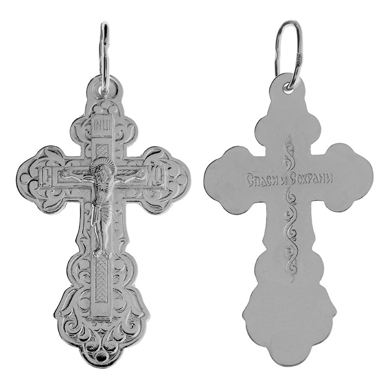 Крест серебряный Ag 925, коллекция Иваново, с молитвой Спаси и сохрани, Платина, 3,64 гр., арт. КРС02242281