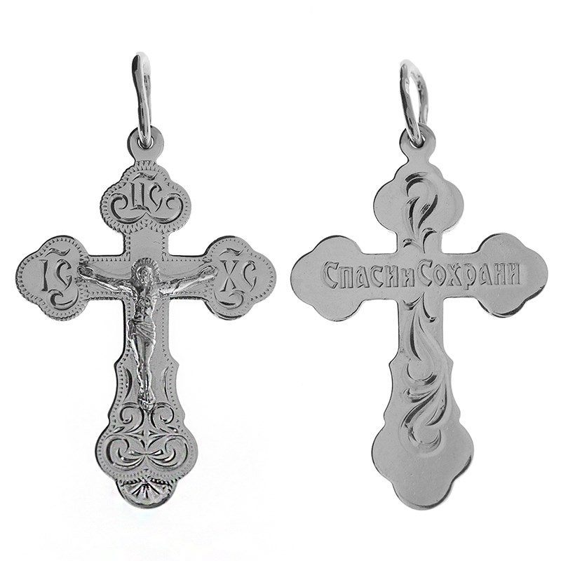 Крест серебряный Ag 925, коллекция Москва златоглавая-2, с молитвой Спаси и сохрани, Платина, 2,26 гр., арт. КРС02242356