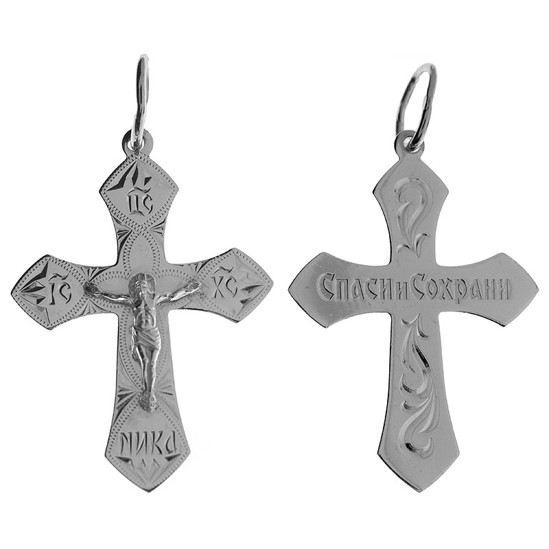 Крест серебряный Ag 925, коллекция Москва златоглавая-2, с молитвой Спаси и сохрани, Платина, 3,39 гр., арт. КРС02242363