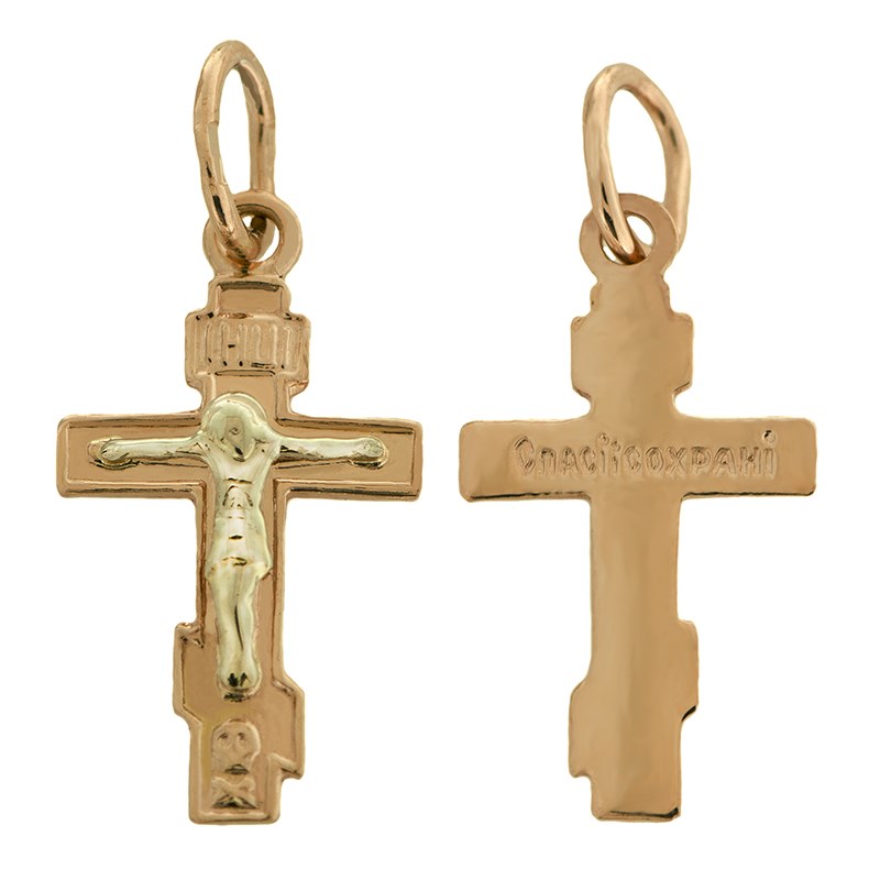 Это Освященное Православное изделие - Крест, из Золото Au 585. Изделие входит в коллекцию: 'Православие'. Изделие имеет высоту 2,5 см. Изделие имеет ширину 1,1 см. Весит, от 0.87 гр.