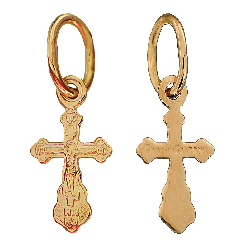 Это Освященное Православное изделие - Крест, из Золото Au 585. Изделие входит в коллекцию: 'Православие'. Изделие имеет высоту 1,7 см. Изделие имеет ширину 0,7 см. Весит, от 0.36 гр.