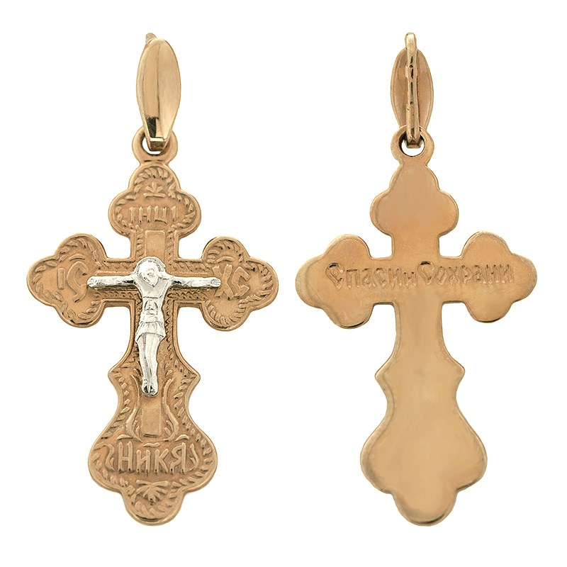 Это Освященное Православное изделие - Крест, из Золото Au 585. Изделие входит в коллекцию: 'Православие'. Изделие имеет высоту 3,2 см. Изделие имеет ширину 1,6 см. Весит, от 1.90 гр.