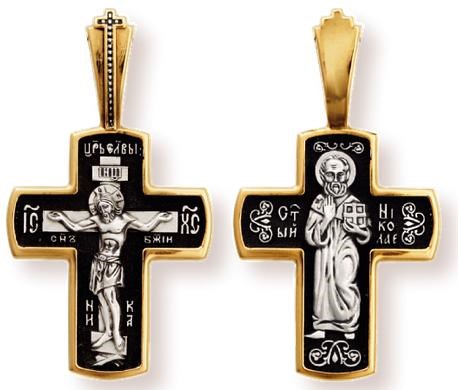 Крест позолоченный Ag 925/Au 585, коллекция Санкт-Петербург, с молитвой Без молитвы, лик Николай Св., Позолота желтая 999*, Чернение (оксидирование), 6,2 гр., арт. КРС02241125