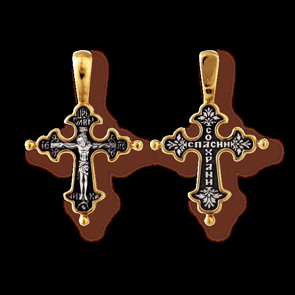 Крест позолоченный Ag 925/Au 585, коллекция Санкт-Петербург, с молитвой Спаси и сохрани, Позолота желтая 999*, Чернение (оксидирование), 3,01 гр., арт. КРС02242063