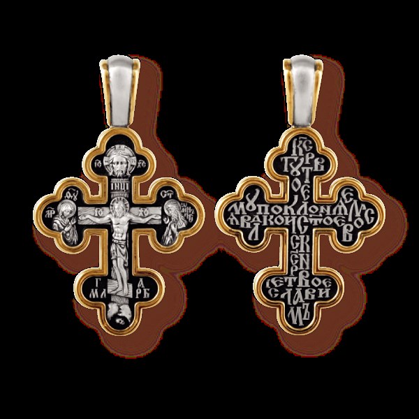 Крест позолоченный Ag 925/Au 585, коллекция Санкт-Петербург, с молитвой Кресту твоему поклоняемся, Владыко, Позолота желтая 999*, Чернение (оксидирование), 4,96 гр., арт. КРС02241140