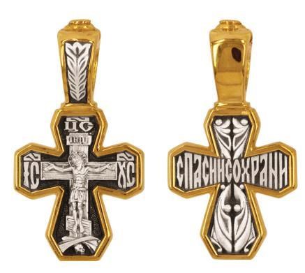 Крест позолоченный Ag 925/Au 585, коллекция Санкт-Петербург, с молитвой Спаси и сохрани, Позолота желтая 999*, Чернение (оксидирование), 3,09 гр., арт. КРС02241161