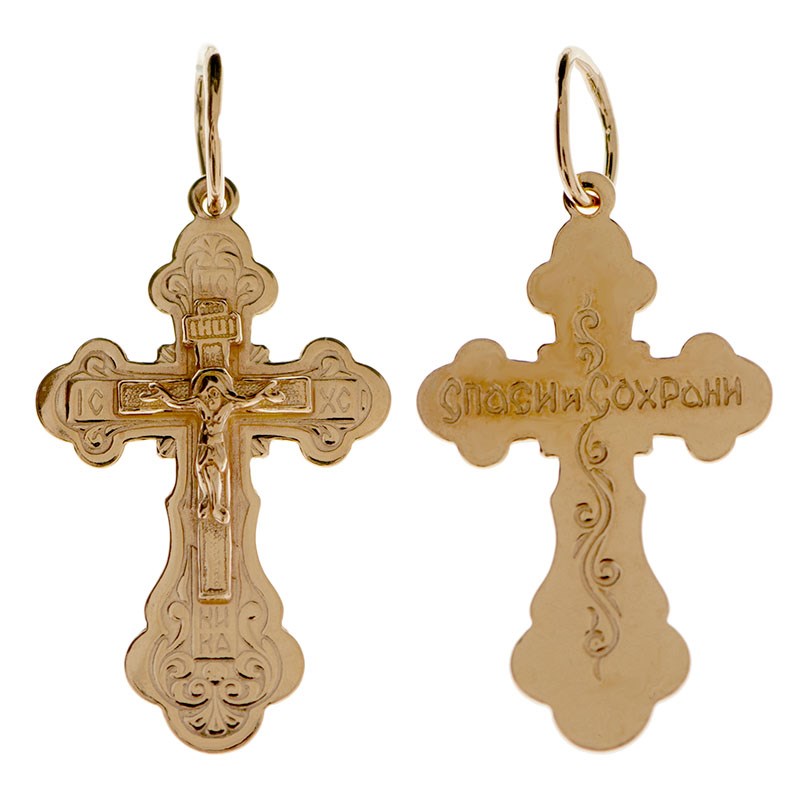 Крест позолоченный Ag 925/Au 585, коллекция Иваново, с молитвой Спаси и сохрани, Позолота красная 585*, 1,99 гр., арт. КРС02242085