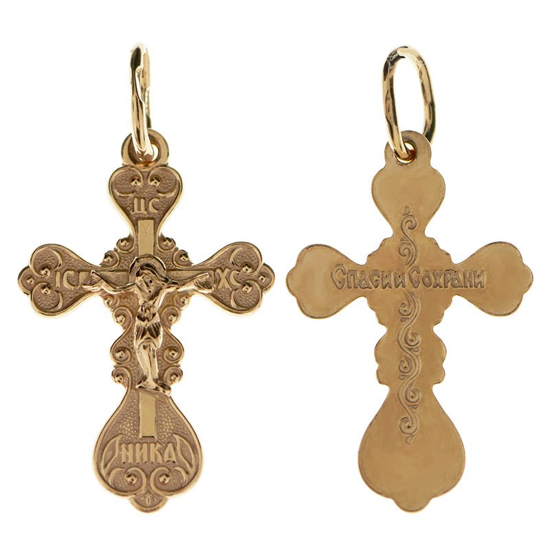 Крест позолоченный Ag 925/Au 585, коллекция Иваново, с молитвой Спаси и сохрани, Позолота красная 585*, 0,93 гр., арт. КРС02242093