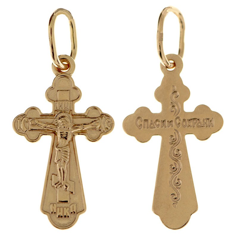Крест позолоченный Ag 925/Au 585, коллекция Иваново, с молитвой Спаси и сохрани, Позолота красная 585*, 0,77 гр., арт. КРС02242094