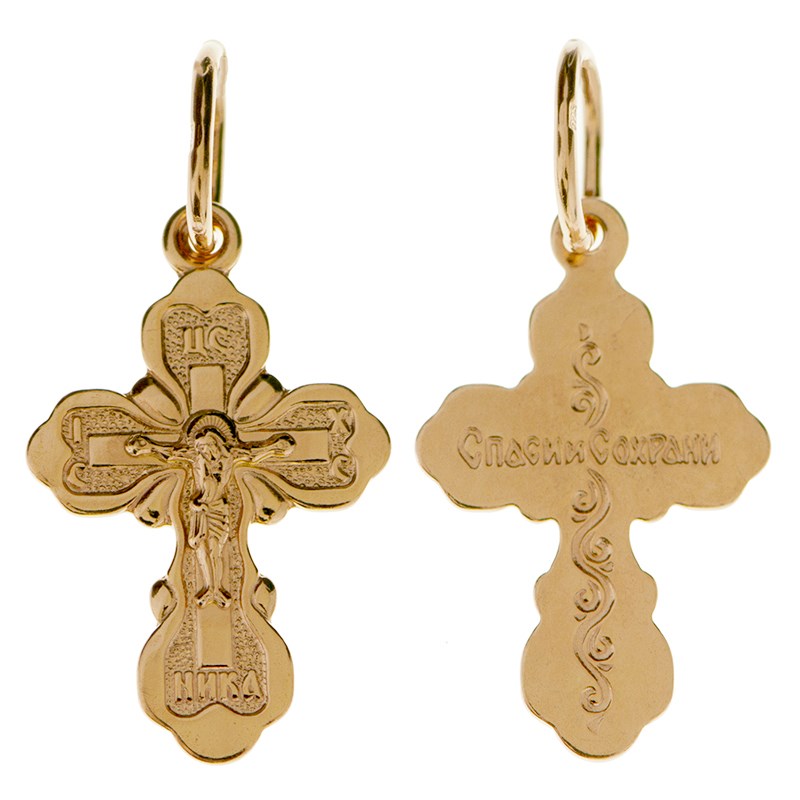 Крест позолоченный Ag 925/Au 585, коллекция Иваново, с молитвой Спаси и сохрани, Позолота красная 585*, 0,91 гр., арт. КРС02242120