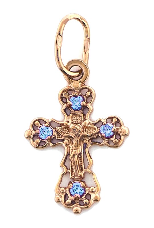 Крест позолоченный Ag 925/Au 585, коллекция Иваново, вставка Фианит, Позолота красная 585*, 1,11 гр., арт. КРС02242200