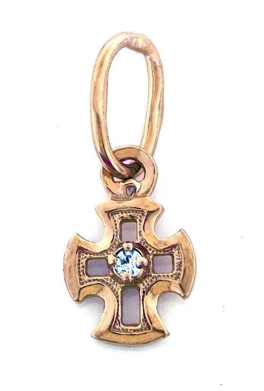 Крест позолоченный Ag 925/Au 585, коллекция Иваново, вставка Фианит, Позолота красная 585*, 0,38 гр., арт. КРС02242201