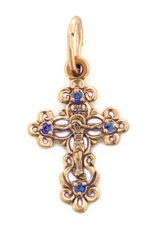 Крест позолоченный Ag 925/Au 585, коллекция Иваново, вставка Фианит, Позолота красная 585*, 0,83 гр., арт. КРС02242202
