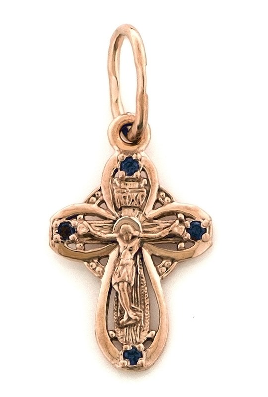 Крест позолоченный Ag 925/Au 585, коллекция Иваново, вставка Фианит, Позолота красная 585*, 0,81 гр., арт. КРС02242203