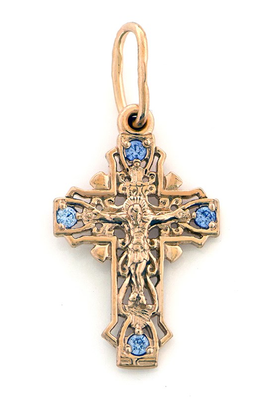 Крест позолоченный Ag 925/Au 585, коллекция Иваново, вставка Фианит, Позолота красная 585*, 1,34 гр., арт. КРС02242206