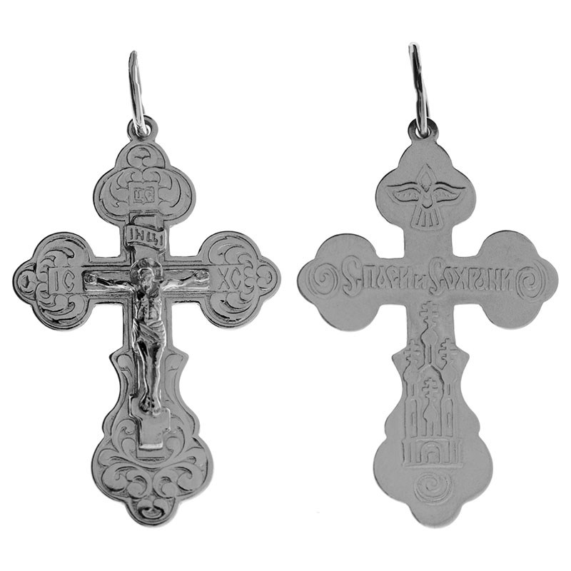 Крест серебряный Ag 925, коллекция Иваново, с молитвой Спаси и сохрани, Родий, 3,1 гр., арт. КРС02241266