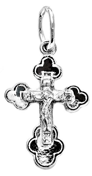 Это Освященное Православное изделие - Крест, из Серебро Ag 925. Изделие входит в коллекцию: 'Иваново'. Произведено по типу: 'Штамп'. Украшена ювелирными камнями. Данные по их ассортименту можно уточнить у менеджера. Изделие имеет высоту 1,8 см. Изделие имеет ширину 1,2 см. Освящен молитвой: ' Спаси и сохрани'. Весит, от 0.65 гр.