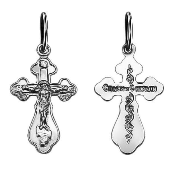 Крест серебряный Ag 925, коллекция Иваново, с молитвой Спаси и сохрани, Родий, 0,81 гр., арт. КРС02242428