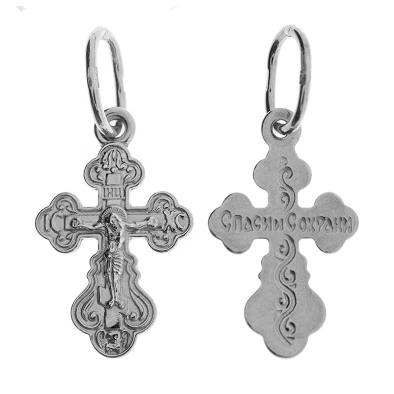 Крест серебряный Ag 925, коллекция Иваново, с молитвой Спаси и сохрани, Родий, 0,61 гр., арт. КРС02242431