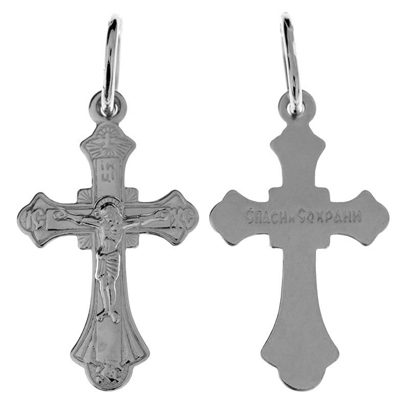 Крест серебряный Ag 925, коллекция Иваново, с молитвой Спаси и сохрани, Родий, 0,75 гр., арт. КРС02242433