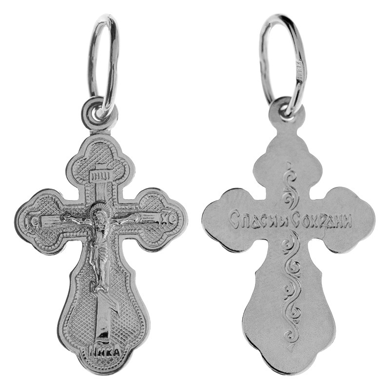 Крест серебряный Ag 925, коллекция Иваново, с молитвой Спаси и сохрани, Родий, 0,94 гр., арт. КРС02242434
