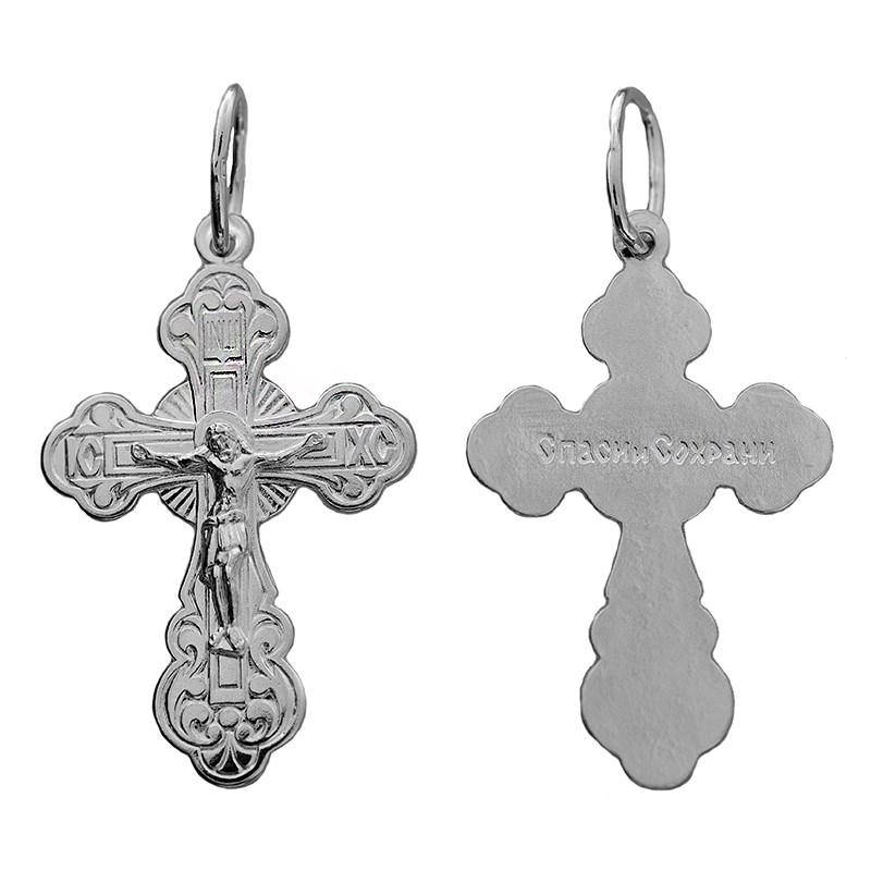 Крест серебряный Ag 925, коллекция Иваново, с молитвой Спаси и сохрани, Родий, 1,71 гр., арт. КРС02241285