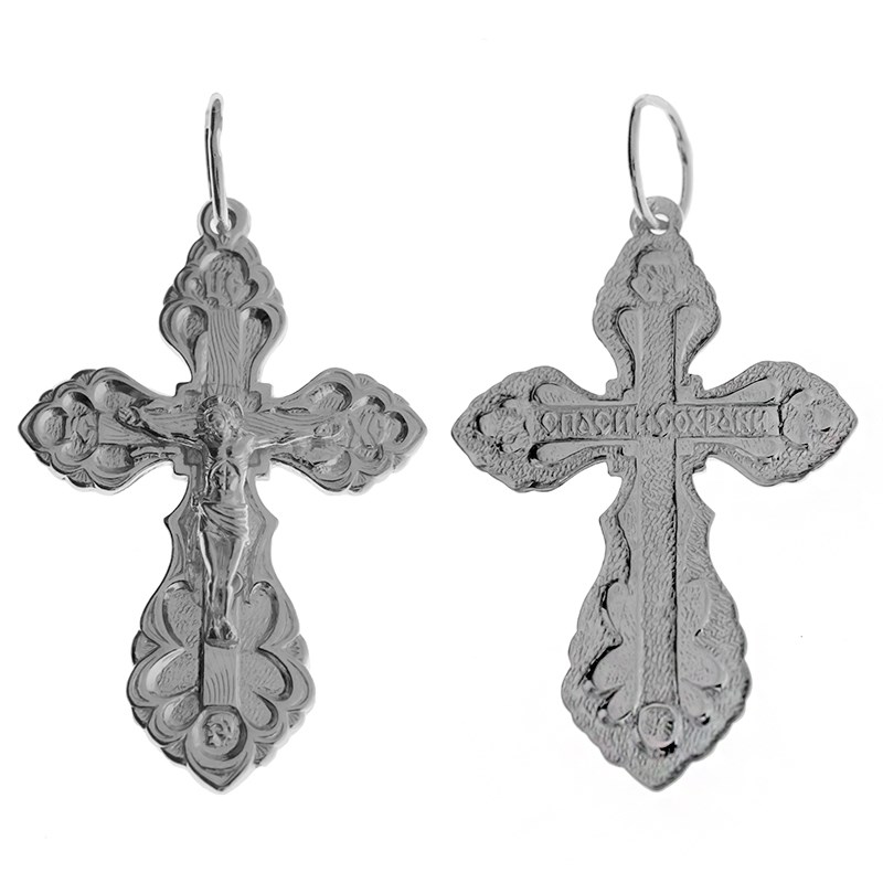 Крест серебряный Ag 925, коллекция Иваново, с молитвой Спаси и сохрани, Родий, 3,83 гр., арт. КРС02242468