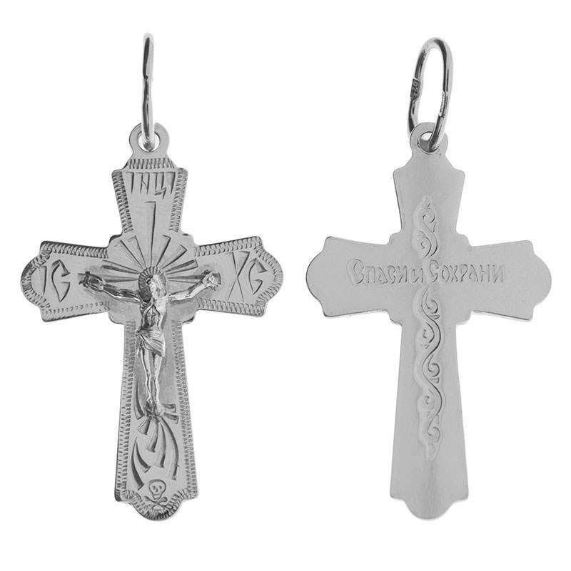 Это Освященное Православное изделие - Крест, из Серебро Ag 925. Изделие входит в коллекцию: 'Москва златоглавая-2'. Произведено по типу: 'Гравировка'. Украшена ювелирными камнями. Данные по их ассортименту можно уточнить у менеджера. Изделие имеет высоту 3,5 см. Изделие имеет ширину 2 см. Весит, от 1.70 гр.