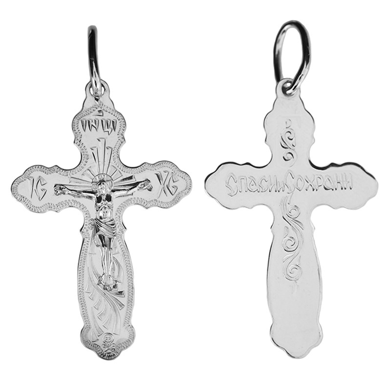 Это Освященное Православное изделие - Крест, из Серебро Ag 925. Изделие входит в коллекцию: 'Москва златоглавая-2'. Произведено по типу: 'Гравировка'. Украшена ювелирными камнями. Данные по их ассортименту можно уточнить у менеджера. Весит, от 3.20 гр.