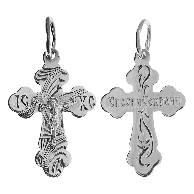 Это Освященное Православное изделие - Крест, из Серебро Ag 925. Изделие входит в коллекцию: 'Москва златоглавая-2'. Произведено по типу: 'Гравировка'. Украшена ювелирными камнями. Данные по их ассортименту можно уточнить у менеджера. Весит, от 1.40 гр.
