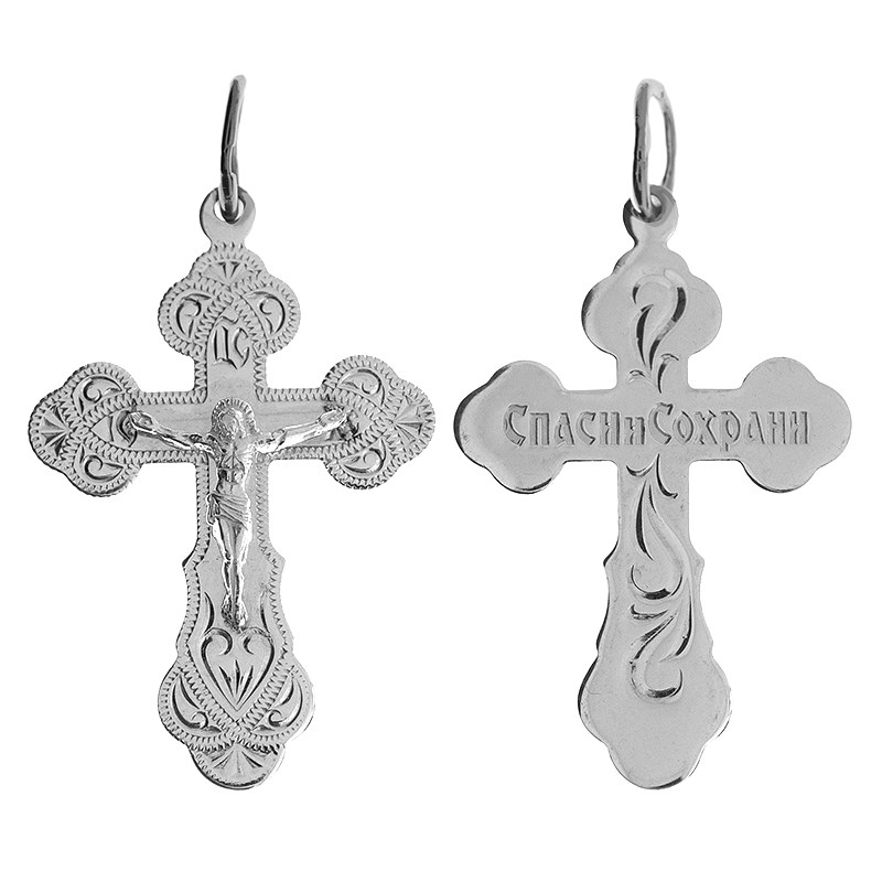 Это Освященное Православное изделие - Крест, из Серебро Ag 925. Изделие входит в коллекцию: 'Москва златоглавая-2'. Произведено по типу: 'Гравировка'. Украшена ювелирными камнями. Данные по их ассортименту можно уточнить у менеджера. Весит, от 2.06 гр.