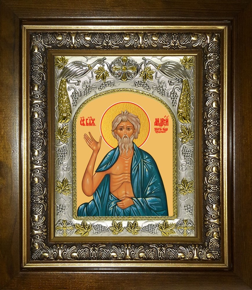 Икона Андрей Христа ради юродивый, в киоте 20х24 см, арт. 29057