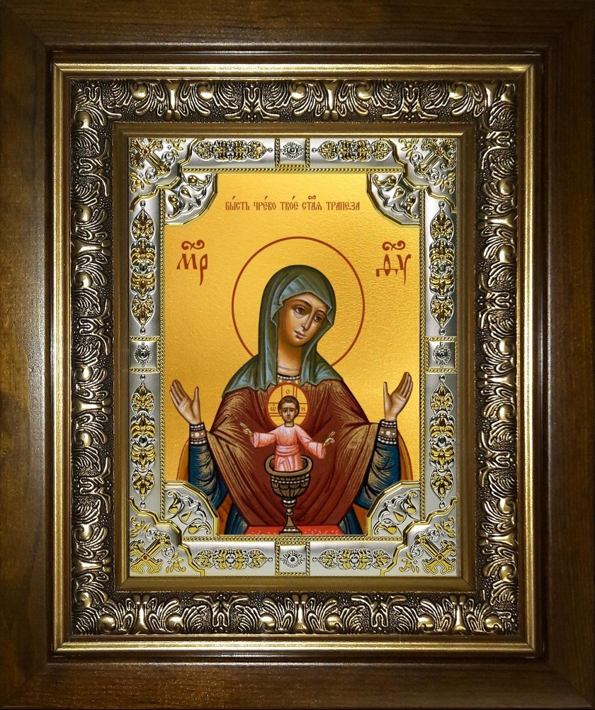 Икона Бысть Чрево Твое Святая Трапеза икона Божией Матери, в киоте 24х30 см, арт. 25158