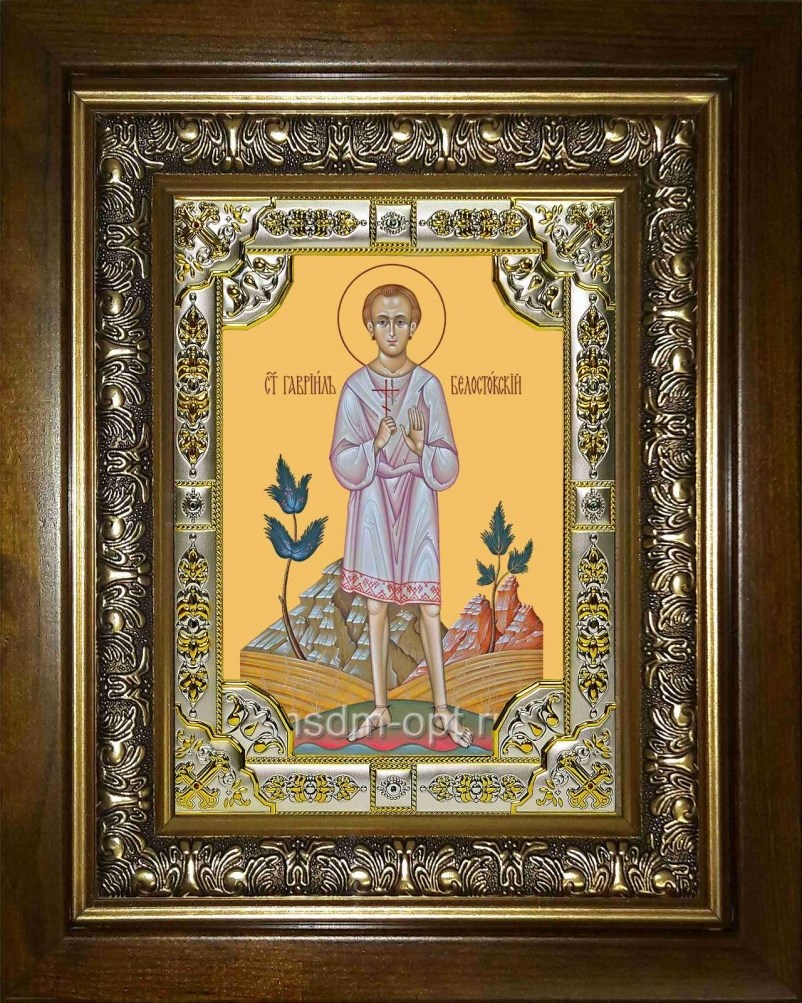 Икона Гавриил Белостокский младенец, мученик, в киоте 24х30 см, арт. 25031