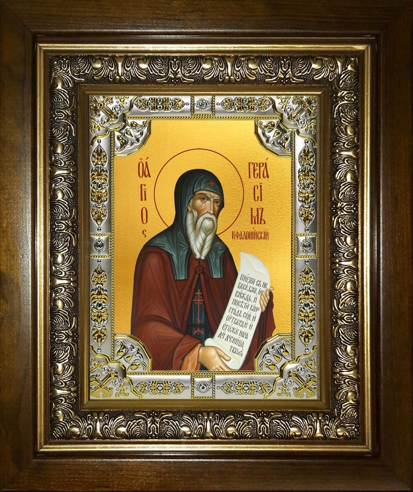 Икона Герасим Кефалонский преподобный, в киоте 24х30 см, арт. 28594