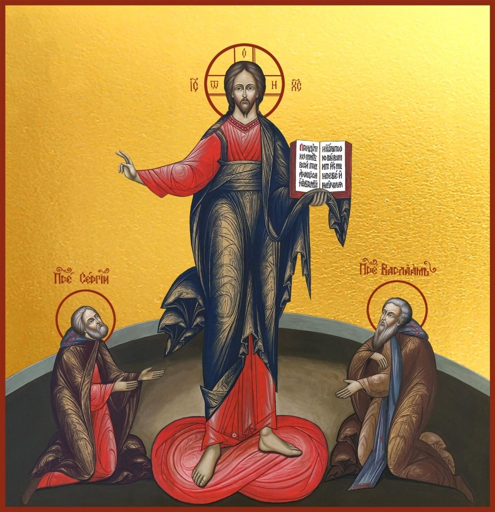 Икона Господь Вседержитель, преподобный Сергий Радонежский и преподобный Варлаам Хутынский, арт. 24372