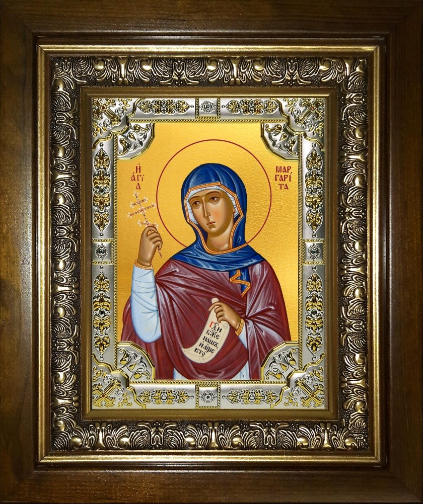 Икона Маргарита Антиохийская, в киоте 24х30 см, арт. 27206