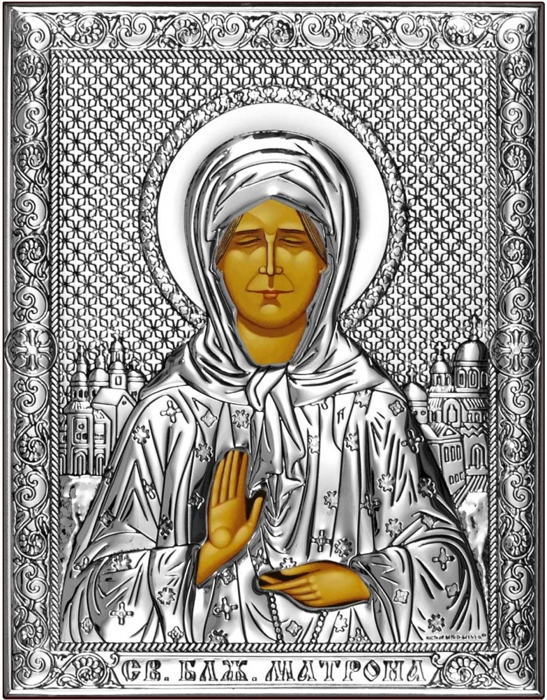 Икона Матрона Московская, дерево, посеребрение 925, 14х18 см, арт. 22397