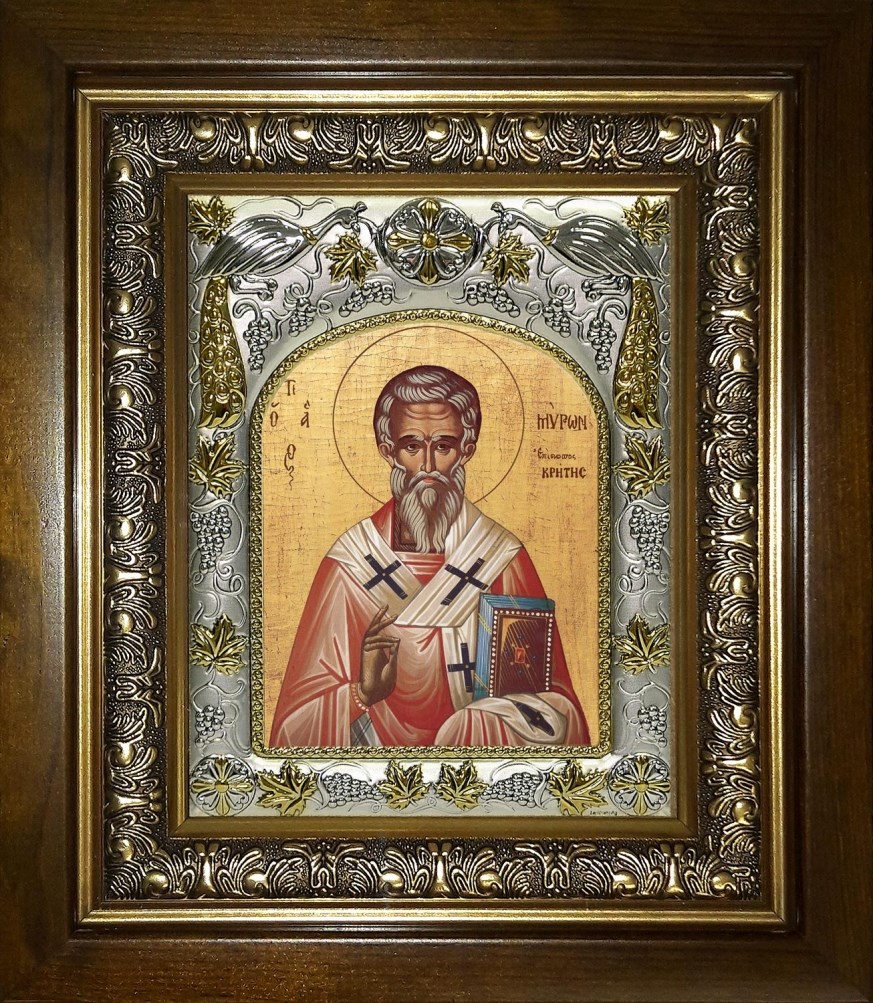 Икона Мирон Чудотворец, епископ Критский, святитель, в киоте 20х24 см, арт. 28595