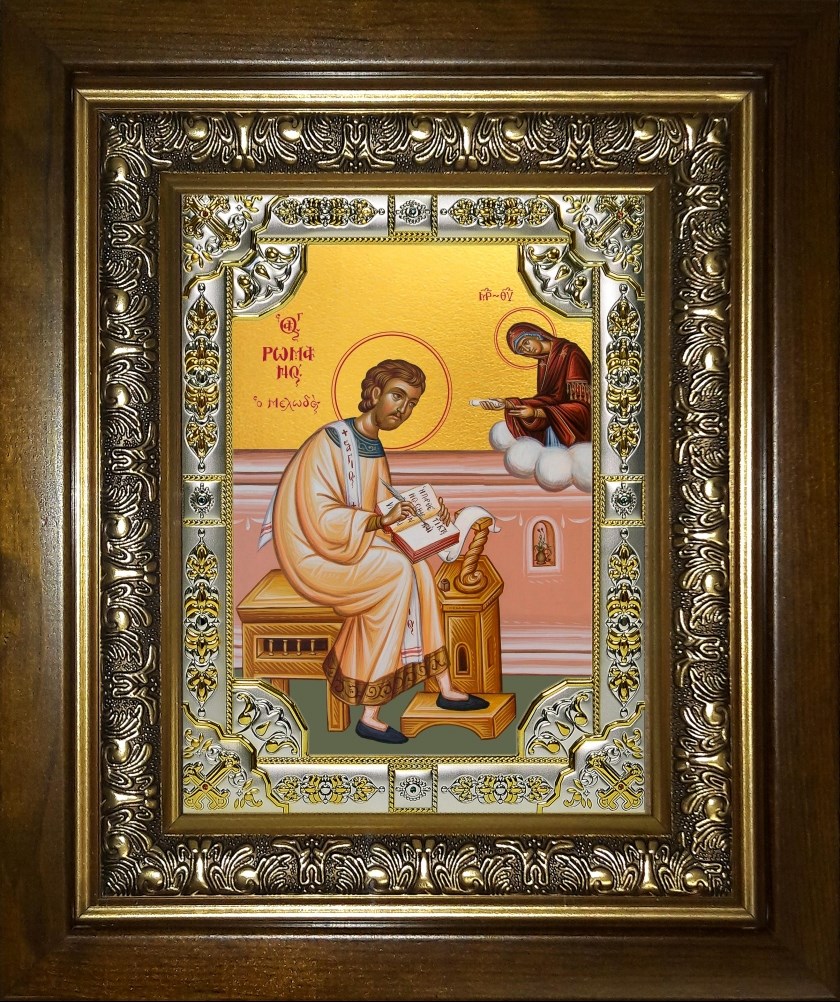 Икона Роман Сладкопевец преподобный, в киоте 24х30 см, арт. 27604