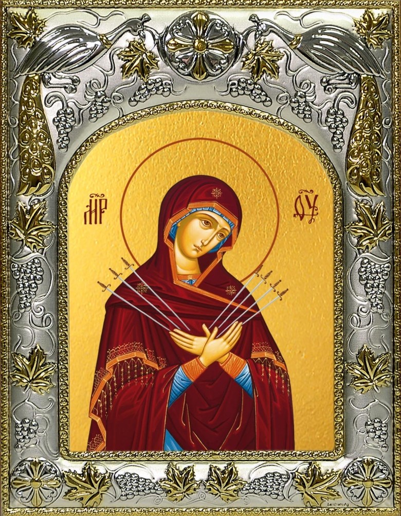 Икона Семистрельная икона Божией Матери, 14х18 см, арт. 25390