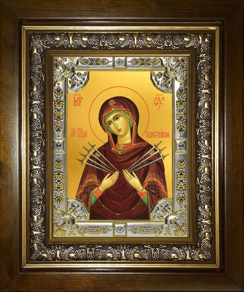 Икона Семистрельная икона Божией Матери, в киоте 24х30 см, арт. 23947
