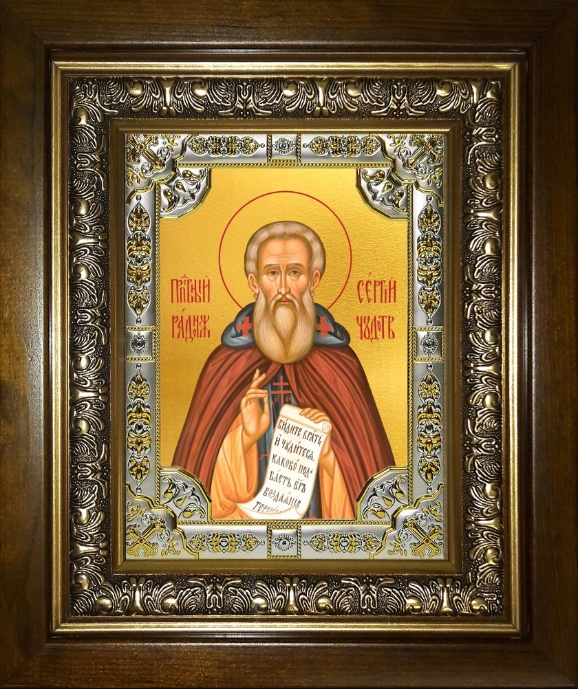 Икона Сергий Радонежский преподобный, в киоте 24х30 см, арт. 26147