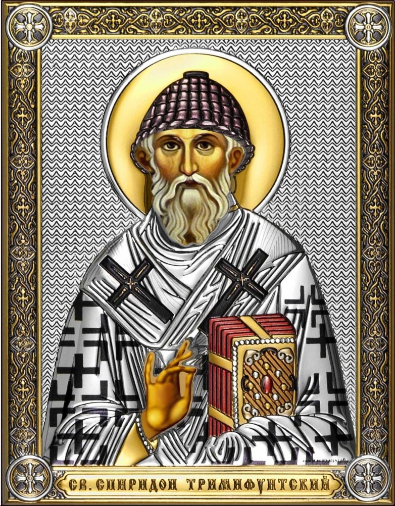 Икона Спиридон Тримифунтский, дерево, посеребрение 925, 14х18 см, арт. 29581