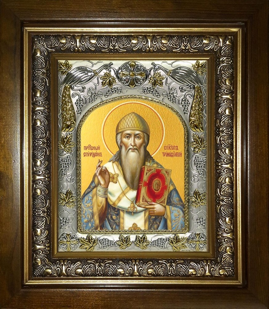 Икона Спиридон Тримифунтский святитель, в киоте 20х24 см, арт. 23269