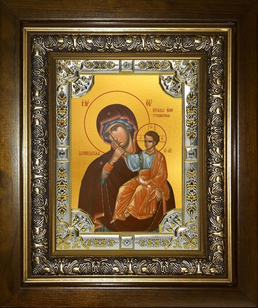 Икона Ватопедская икона Божией Матери, 18х24 см, со стразами, в деревянном киоте 24х30 см, арт. 22181