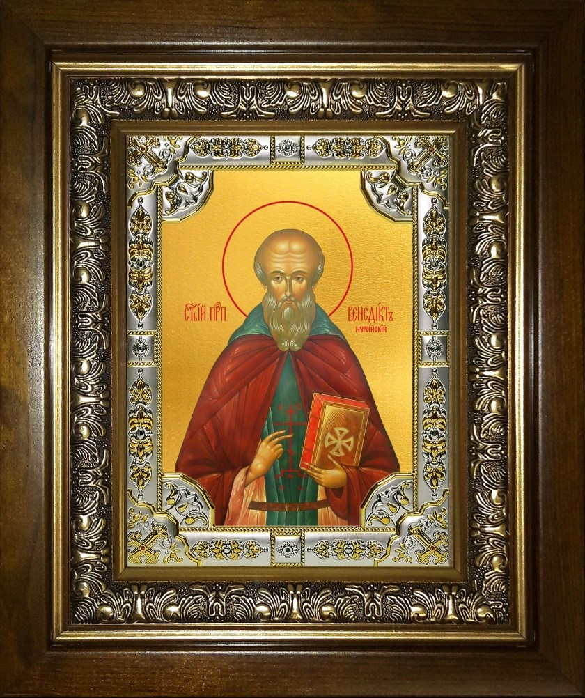 Икона Венедикт Нурсийский преподобный, в киоте 24х30 см, арт. 27082